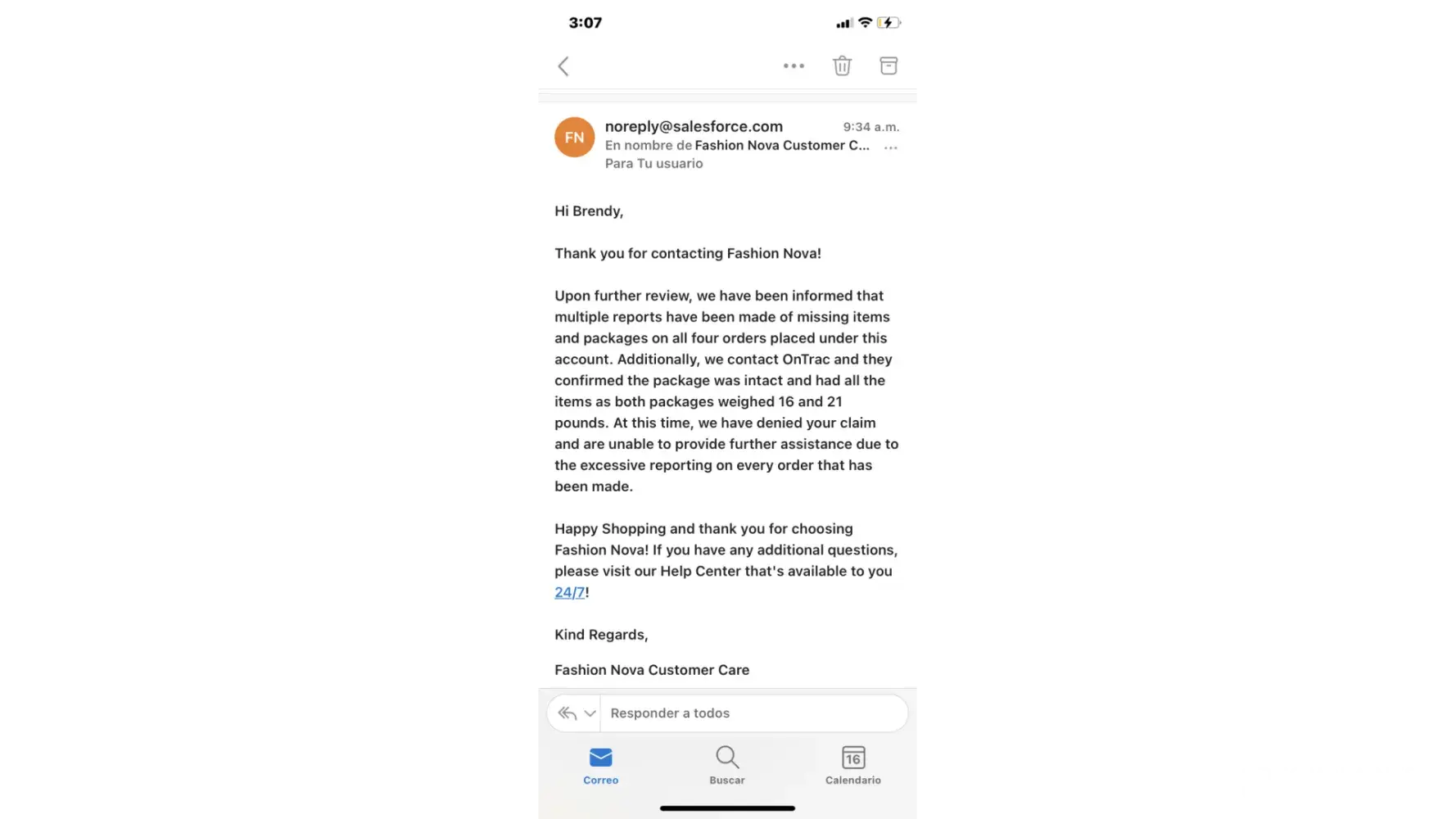 Am complaining about my package fashionnova