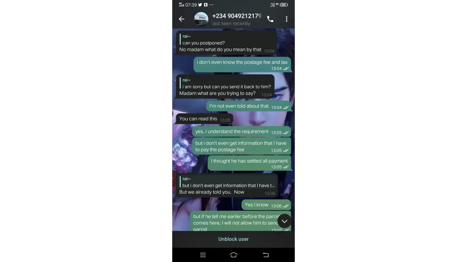 Habe auch dem Herr Lee eine WhatsApp gesendet und ihm erst mal Gratuliert für den Dubiosen Lieferservice, denn er dafür Ausgesucht hat. Die wollen das ich trotz dem das alles bezahlt wurde noch USD 2000. Ebenso habe ich ihm klar geschrieben das ich kein Geld bezahlen werde und auch keine Liefer Annehme, sondern die Annahme verweigert. Ich halt nicht so blöde bin, wie sie es gern hätten und den Dummen nichts wissenden bin und ihnen zuliebe spiele.