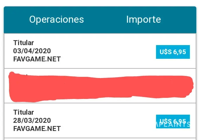 Favgame.net, me ha pasado a mi cuenta el dÃa 8 de Febrero 2017 dos cargos de 10, 5€ cada uno.Nunca me he registrado en este sitio y no entiendo como pueden hacer estos cargos a mi banco no se si con tarjeta de crédito o de otra forma.Dicha tarjeta figura a nombre de mi marido Angel Julia Muñoz.