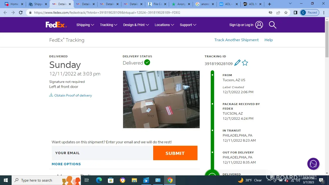 Packages in the fedex truck (out for delivery) for the last 3 days
