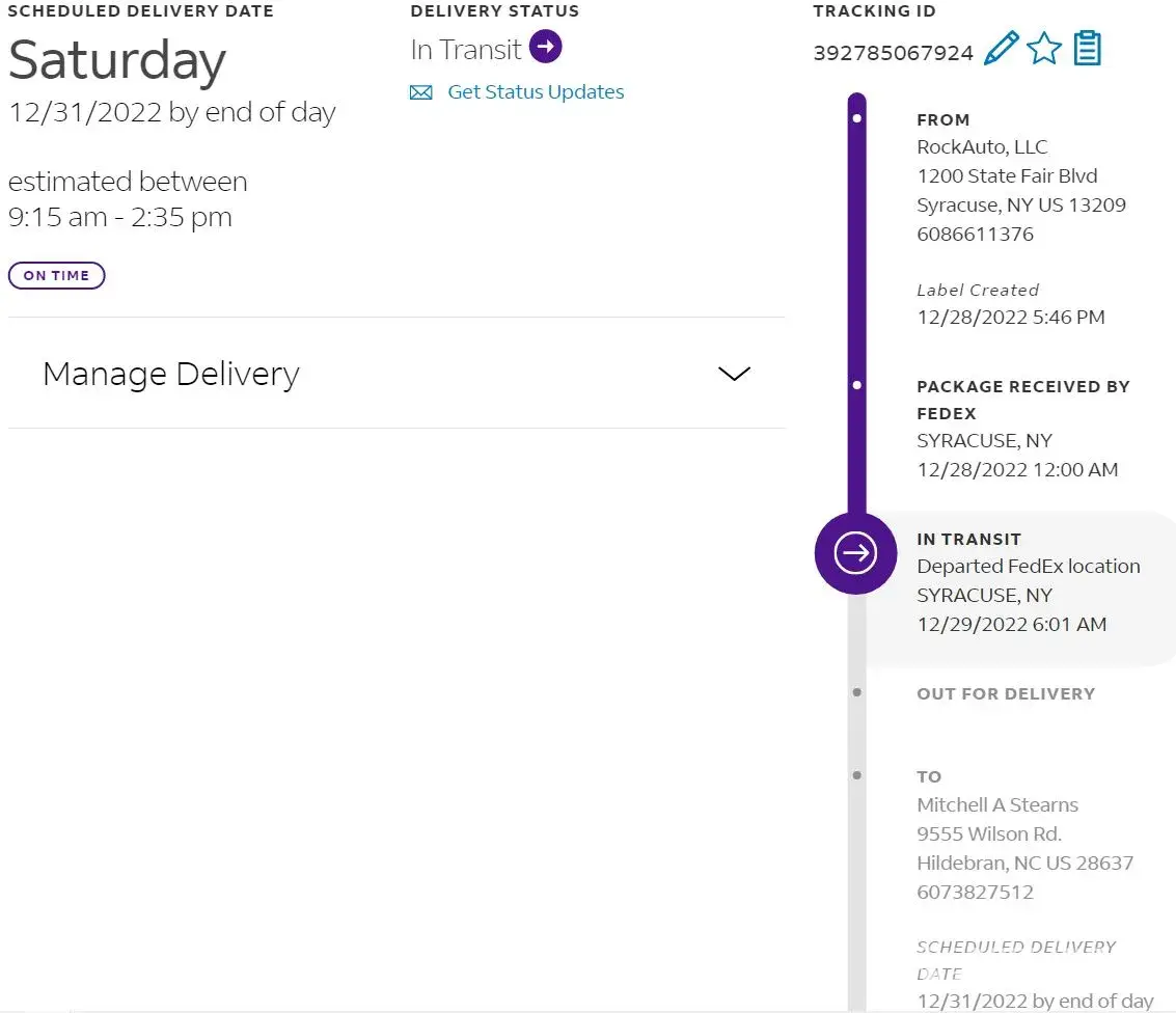 Now, here is the kicker. I received a text this morning 12/30/2022 from FedEx stating my delivery will be tomorrow 12/30/2022. Today is 12/30!