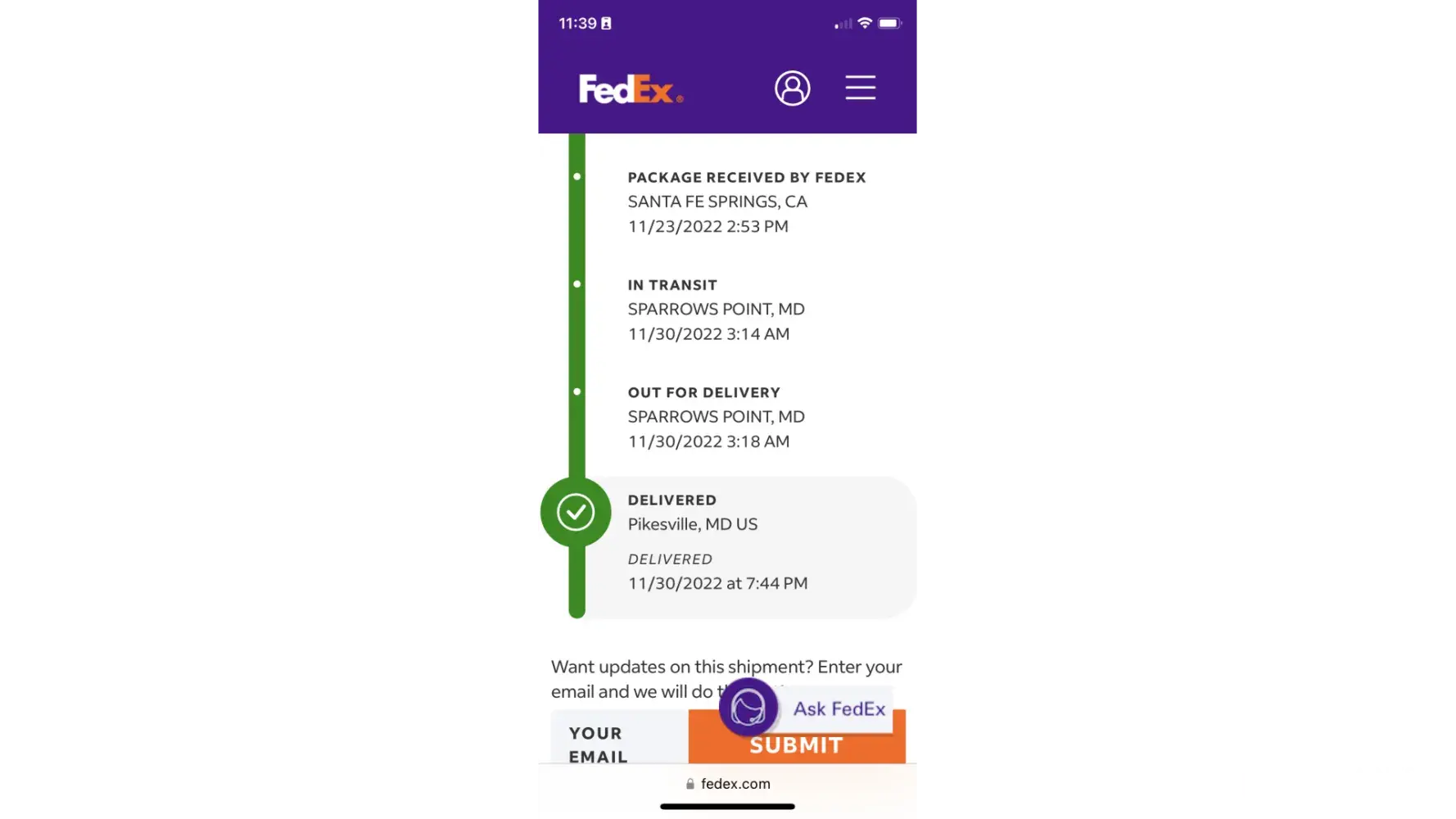 Fed Ex tracking