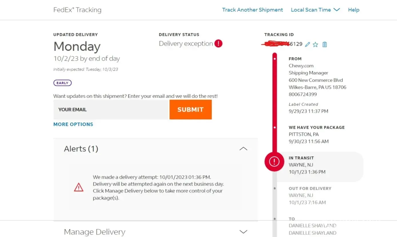 I went to a FedEx office to ship a package of legal documents abroad. Due to your employee’s mistake, not all information required for delivery was entered into the system, more specifically, a contact number for the recipient and the sender. In addition, the local FedEx claimed that they had attempted a delivery, which is not true because the recipient stays at home and can’t leave the house due to injury, so I know for a fact that the local FedEx branch just never attempted a delivery.