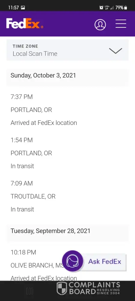 I bought a phone from the Samsung website on October 11 and I got a notification saying how I would be getting it on the 13th of October, but when the 13th passed I was told that my package was potentially being delayed. So I decided to leave it be. A few days passed and I get a new notification saying how I would be getting it on the 18th. It was still in Texas during those whole days and I was beginning to feel skeptical of it. On the 17 it finally moved from Texas to Tracy, CA. It still said that same thing that it would arrive on the 18th of October. Well, today is they 18th and nothing came in the mail at all from FedEx.