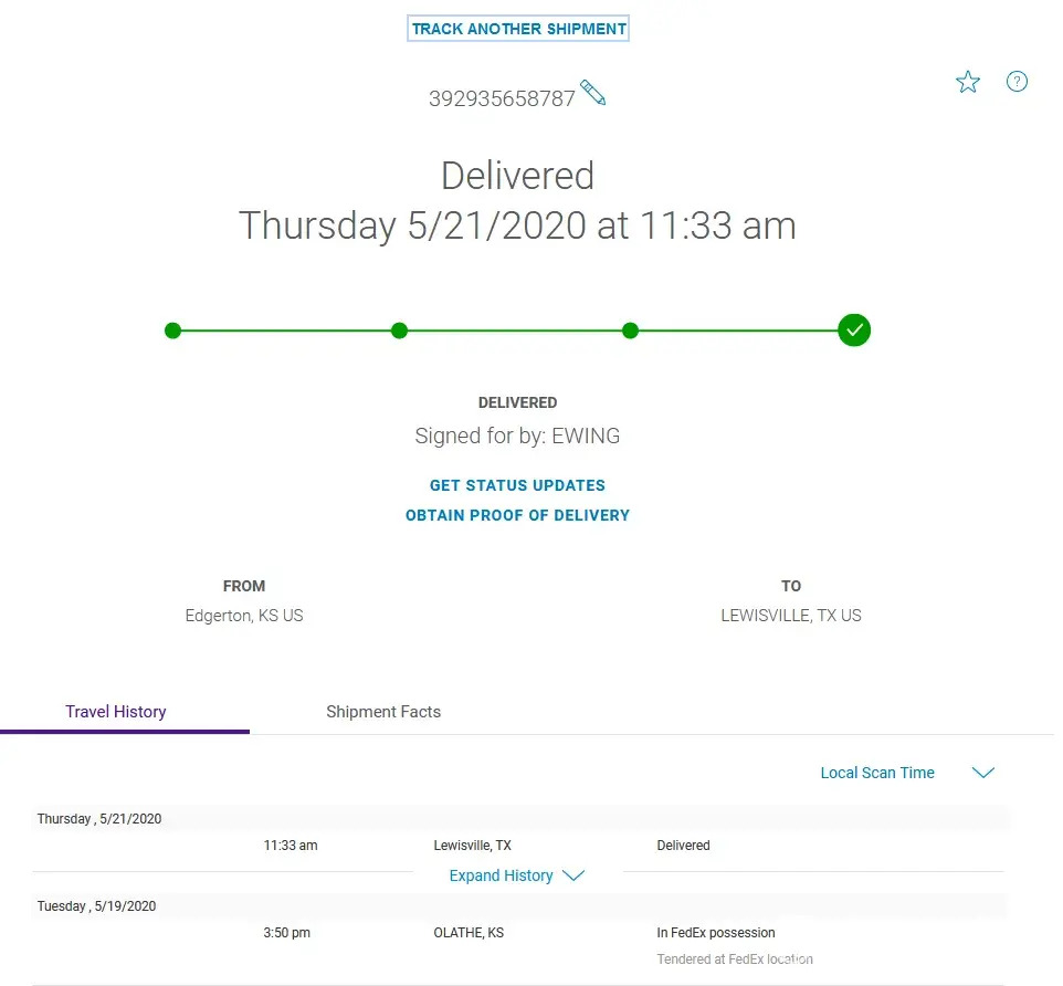 On May 9, 2020, I placed an order online for a set of glasses and a salad bowl. Both arrived on May 14, 2020. The salad bowl was not what I expected and frankly, did not look suitable to serve food in, so I started an online return at the Bed, Bath & Beyond website. Following their directions, I repackaged the salad bowl and took it to a FedEx office in Olathe, Ks. The FedEx tracking number was [protected]. When I did not hear from BBB about the status of my return or receive a refund, I started tracking it online. BBB makes it incredibly difficult to find information about returns on their website, but eventually, through trial and error, I found it at this URL: https://tracking.narvar.com/tracking/bedbathandbeyond/fedex?tracking_numbers=392935658787&type=ret&locale=en_US&order_number=BBB6482735810. This is where I learned the salad bowl had been received by a fellow named Ewing at BBB's Lewisville, TX facility on May 21, 2020 at 11:33 a.m.
