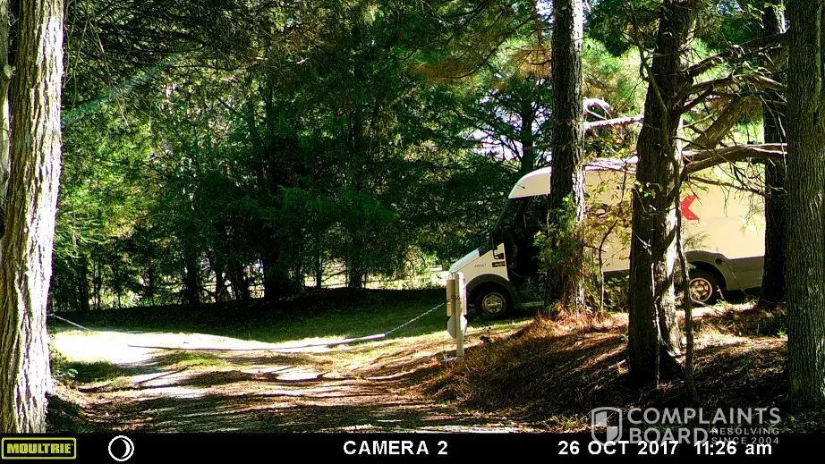 While reviewing my exterior cameras I noticed that a FedEx truck dropped off a package at the chain pulled across my driveway to keep delivery trucks out because there is no room at the end for truck turnarounds. This driver chose to pull up to the chain, get out of the truck drop the package at the "No Delivery Trucks Past this Point" sign, then back up and pulled up into my front lawn and proceeded to turn around on my lawn. He could have simply backed straight out of my driveway at the point before he pulled up onto the lawn. According to the date stamp on the camera this occurred on October 26, 2017. It is operated by Choto Enterprises of Clayton, truck #405367. He violated our trust in delivery drivers by his action because it seems to have been an intentional act due to the sign being posted. Below that sign is another one notifying that the premises is monitored by cameras, but I guess he felt that there was no camera.