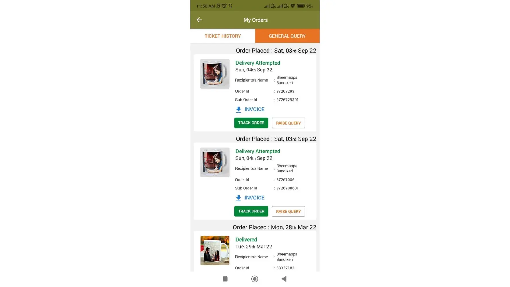 I had ordered for two photo printed coffee mugs on 3rd Sept(order nos. [protected] & [protected]) with one day delivery i.e by 04.09.2022. But on 04.09.[protected]@3.51, I recieved mesage saying "delivery attempted'. This was idiotic update as i was at home for the whole day. And these items were urgently required for occasion on 05.09.2022, but it was not delivered. Still my orders are not delivered. Now they are saying" addres is incomplete and re-delivery is not possible. If they are not able to deliver items in time or even now, I need my money to be refunded with applicable interest on it. Very reckless people and not fit for online shopping. It seems to be fraud company. This is my second worst experience with them.