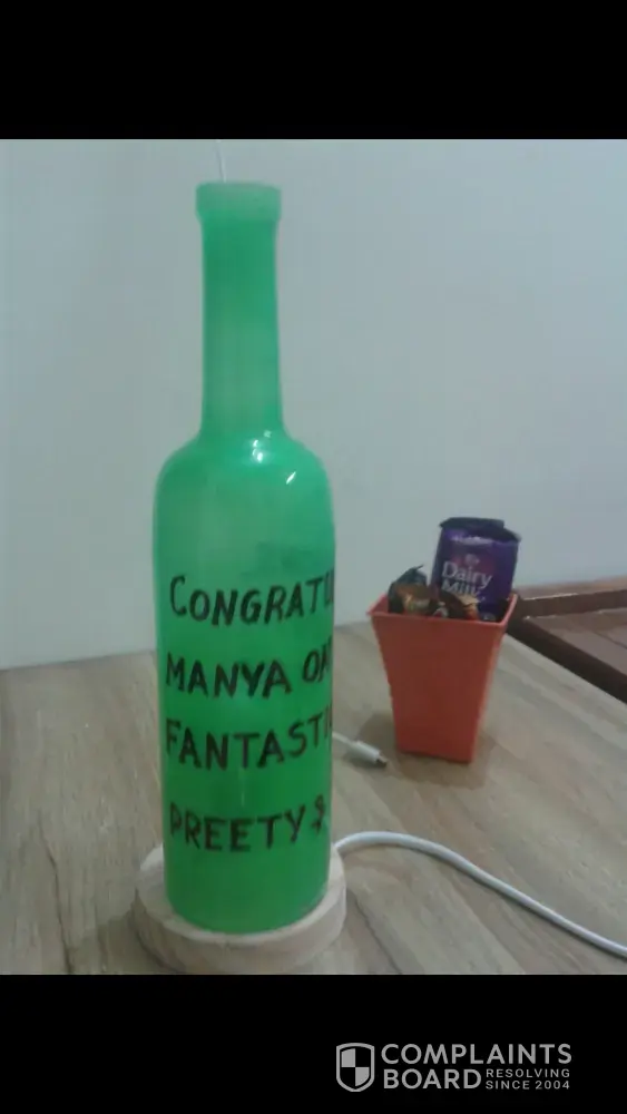 Had ordered a personalized lamp which I found as one of the unique and beautiful product on your web. Unfortunately the final product sent to my niece with message didn't appear good at all. Although there wasn't any issue with the lamp but the way message was printed (uppercase, big font size)spoiled the whole thing. Â I am attaching the pic of original product advertised on your website and the one which was delivered to me.