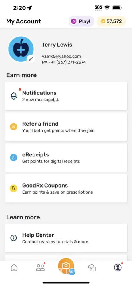 I just want my account returned to where it was with points and working for receipt entries.