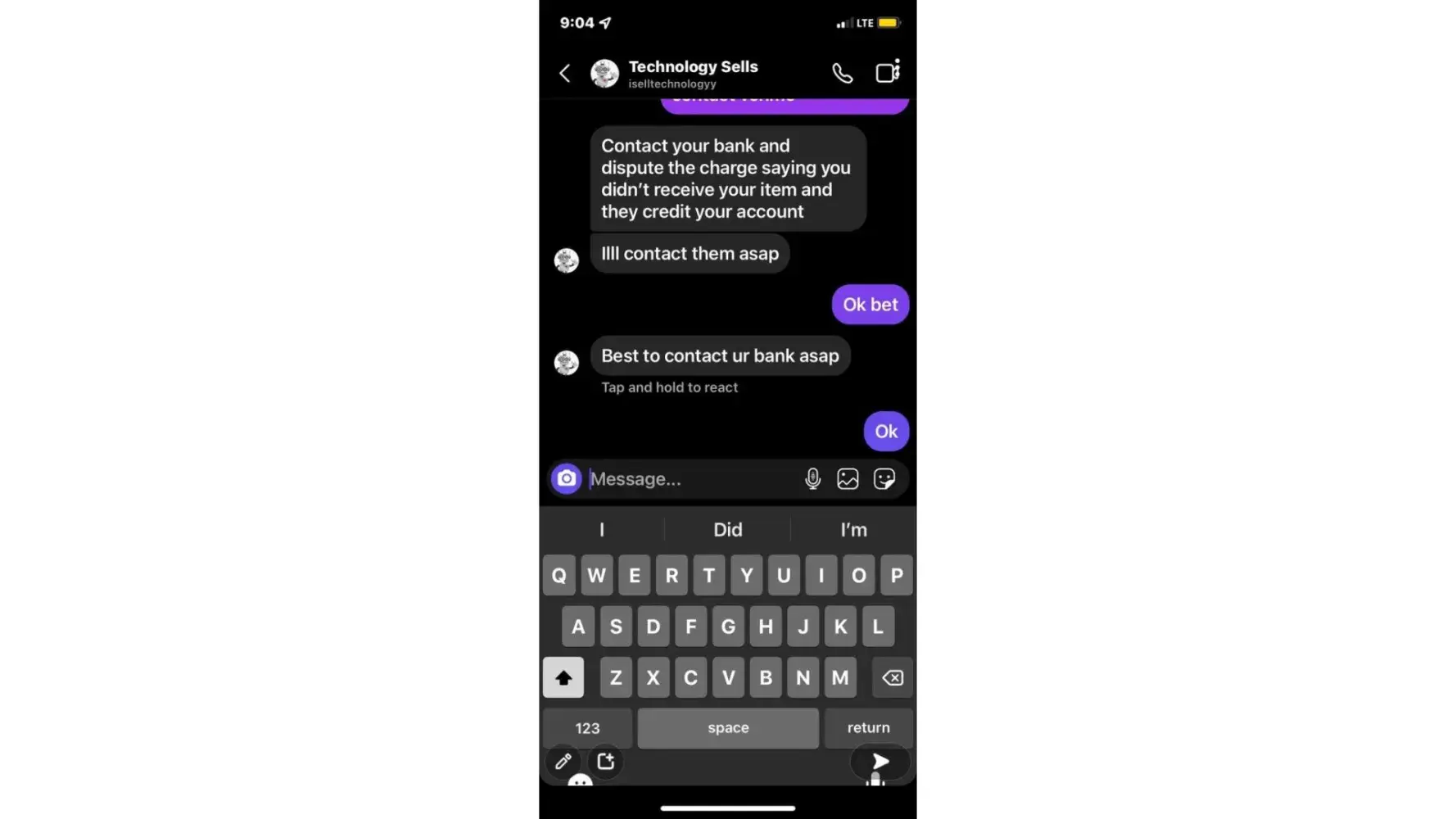 Not returning my money after Investigation