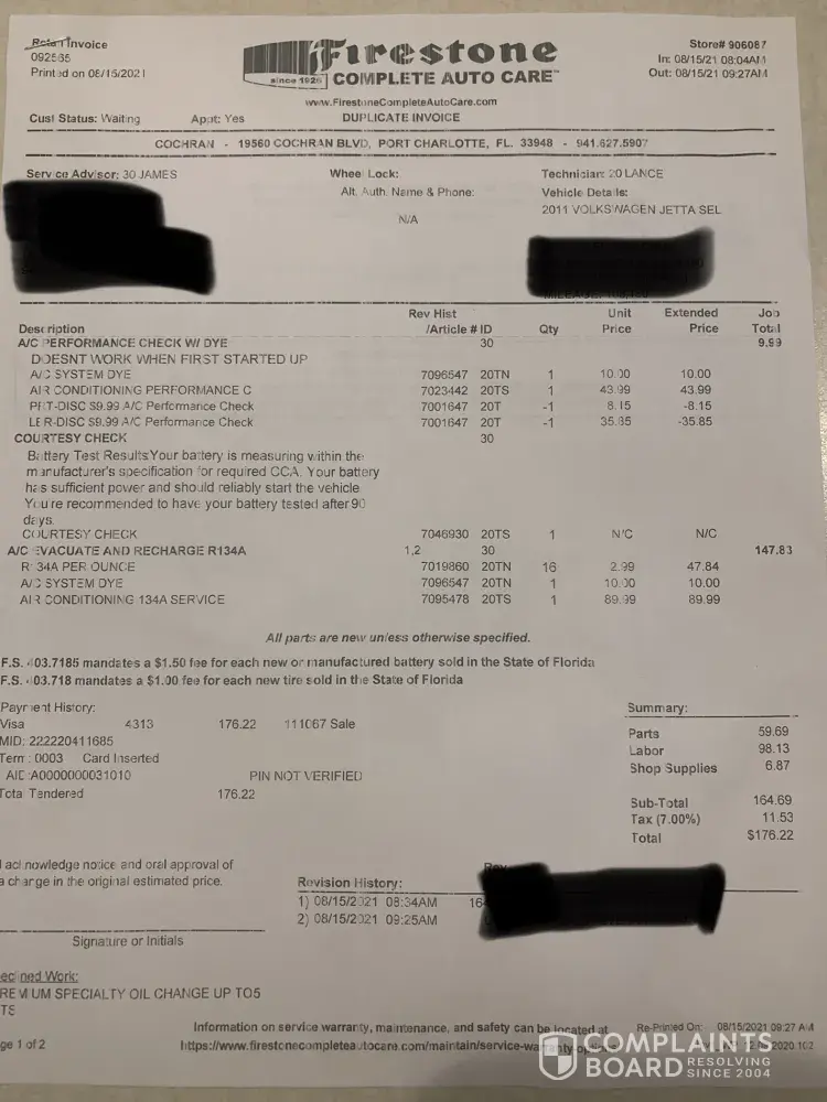 Read full complaintFirestone Complete Auto Care