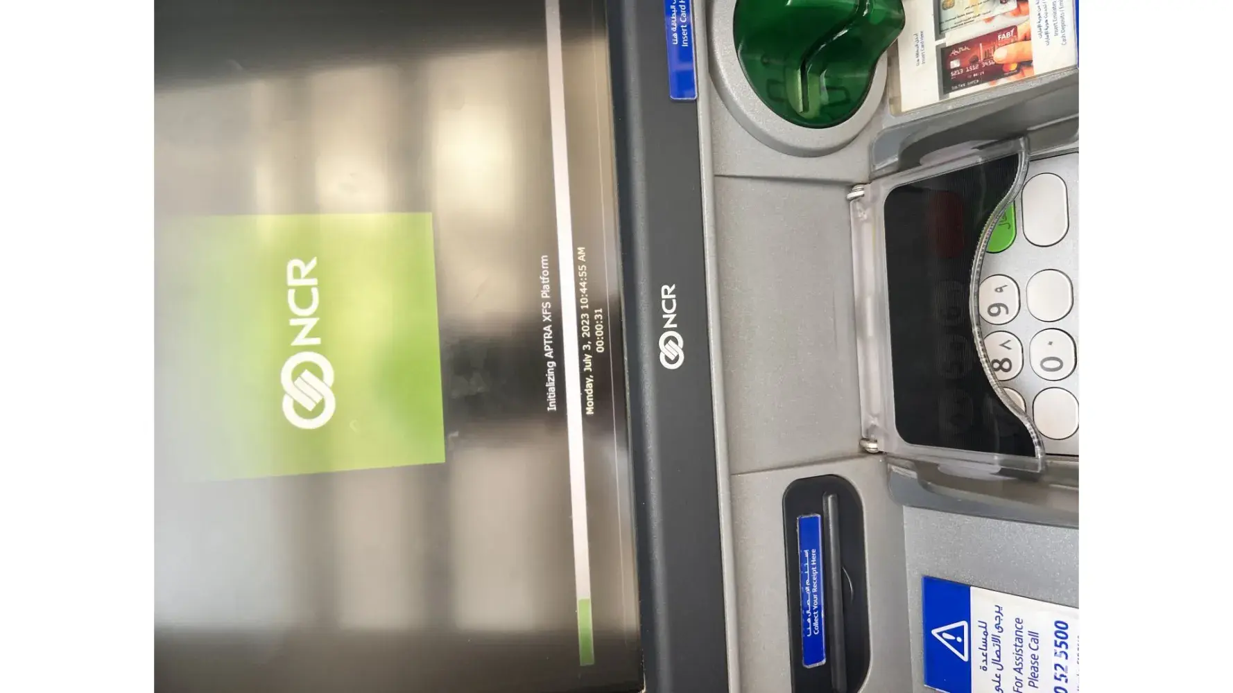 Today at 10:36 I attempted to make a withdrawal of AED13000 for paying my rent at this ATM 7642. After I received the message to print a receipt or go green, the screen (computer) started rebooting, and I did not receive my money! I received a text message to say the money was taken from my account.