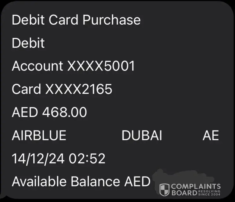 Respected Sir / Ma'am, I have 1 issue but no one resolve this issue from 2-days i have marked email to customer service etc but they didn't reply me and not resolving this matter I have booked from Airblue Ticket on 14-Dec-24 they will be charged me 14 & again they will be charged in 16-Dec-24 same Transaction 468-AED how is resolving this matter how can...