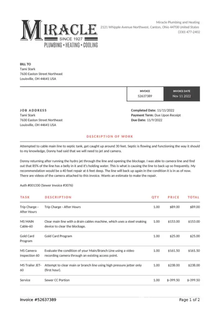 We called in two service calls. One for two drain problems, Plumber. One for a condemned wall furnace by the SoCal Gas Company.