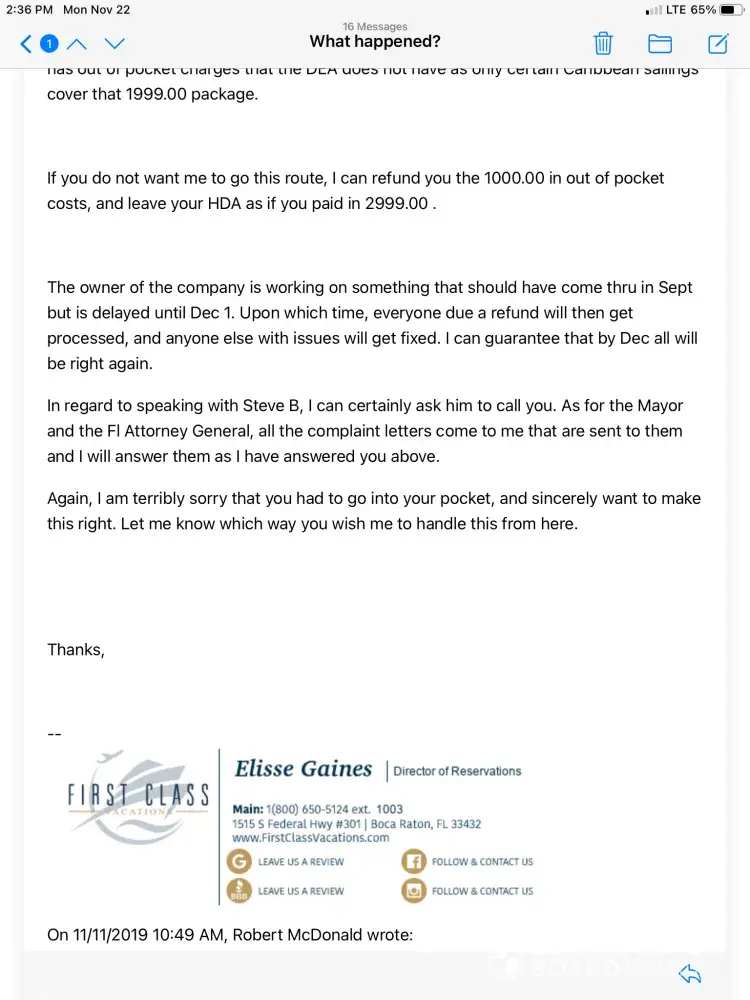 First Class Vacations complaints: history and resolution overview