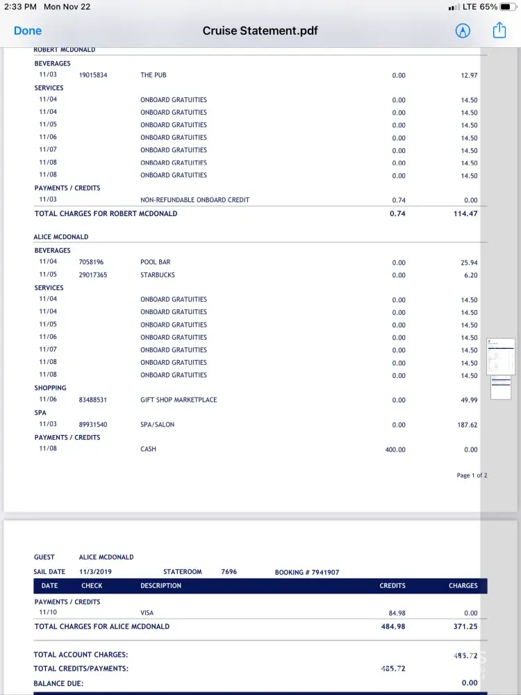 Paid for luxury diamond package. Was a cruise for 2 on Royal Caribbean for 7 days. Was supposed to include hotel and car parking fees, $500 on board credit, and all gratuities paid. I ended up paying for my hotel and car parking fees, did not get any on board credits, and paid for all gratuities. Spoke with Tracey Purcell who was finalizing everything since...
