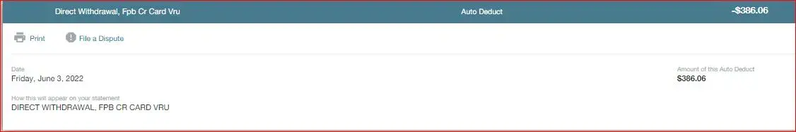DIRECT WITHDRAWAL FPB CR CARD YRU