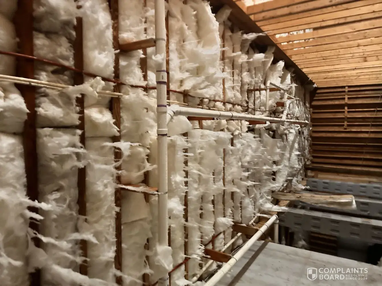 The large hole that was left behind with insulation sticking out from the wall and it took another month for some to come patch and paint it.