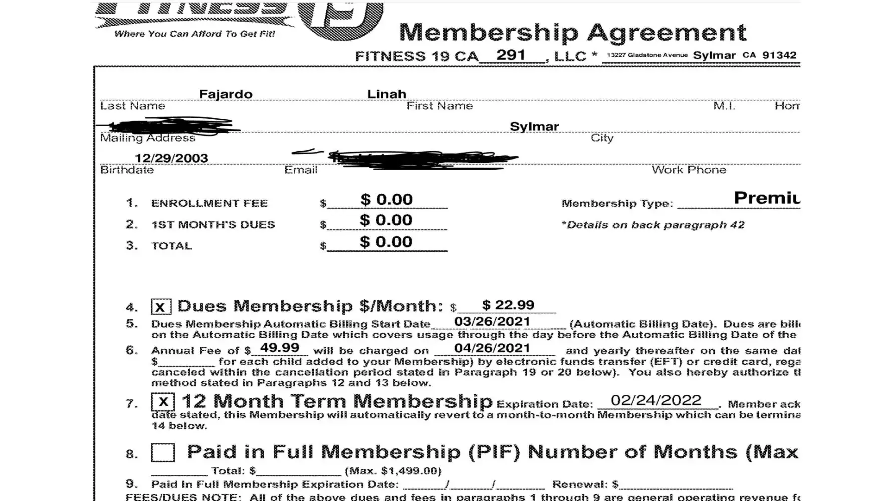 4) Once fitness 19 took over was told to call a 800 number to correct.