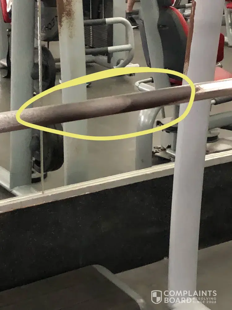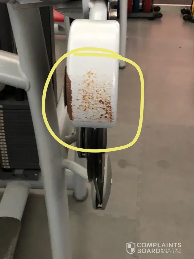 rip off equipment upholstery, rip off plyo box, numerous rusty equipment handles and equipment.