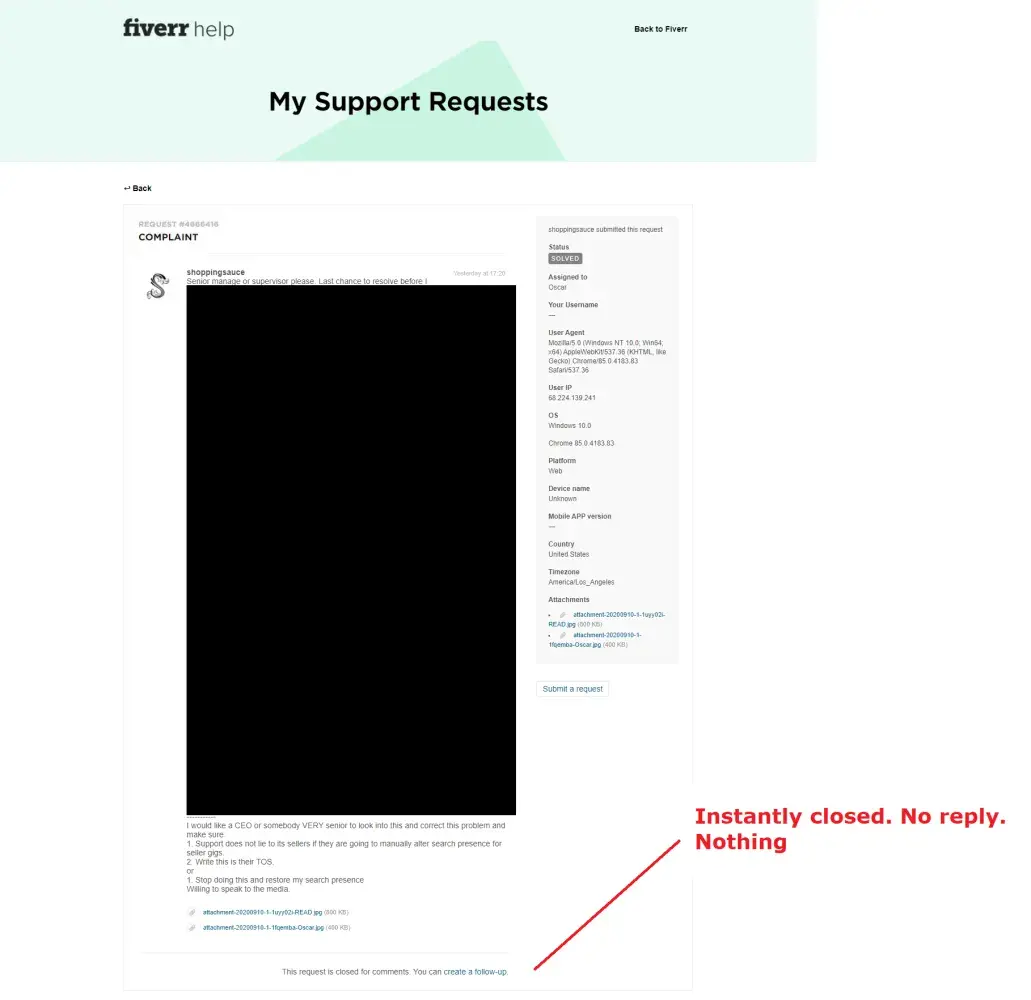 Naturally, I immediately raised another ticket: https://fiverr.zendesk.com/hc/en-us/requests/4629543