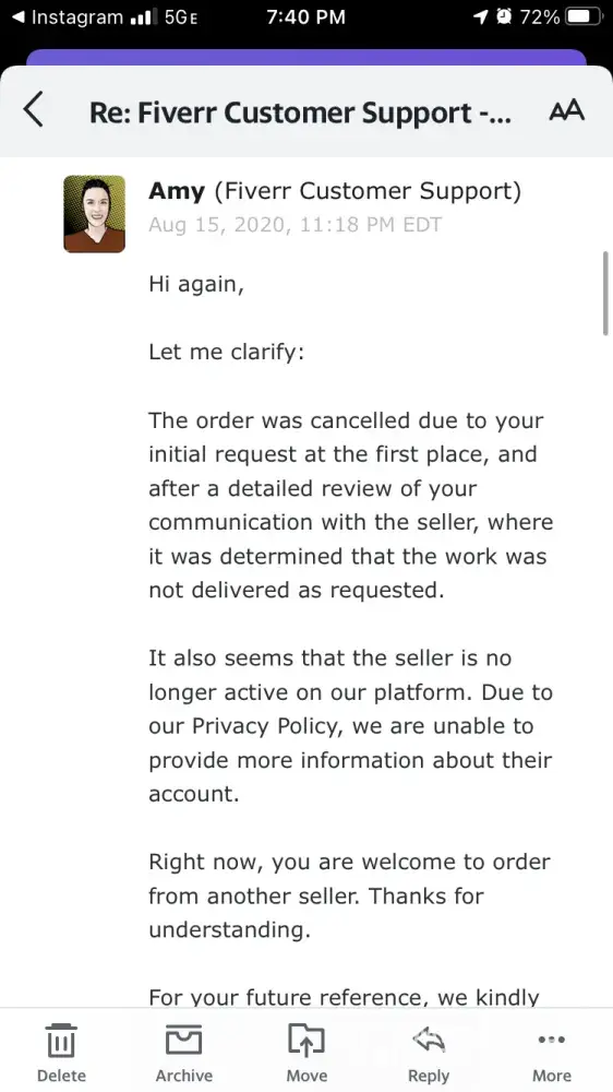 Furthermore, Fiverr has deleted all correspondence and proof of the service, which is concealing evidence and not permitted.