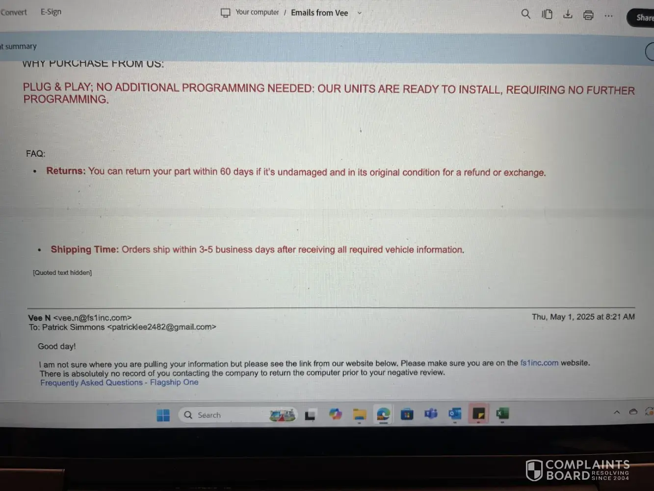 When I approached fs1 again to return the ecu, things took a turn for the worse. They refused to issue a refund, citing their 30-day refund policy, even though I had reported the faulty item to them and spent over two weeks of that time in transit for an RMA. The person I chatted with mentioned that they were the only supervisor who could help, but they were not willing to do anything about it. All they offered was another RMA, even though after two failures from them, I paid for the dealership to do everything for me. It was clear that I didn’t need another bad ecu from them, and at this point, I just needed my money back.