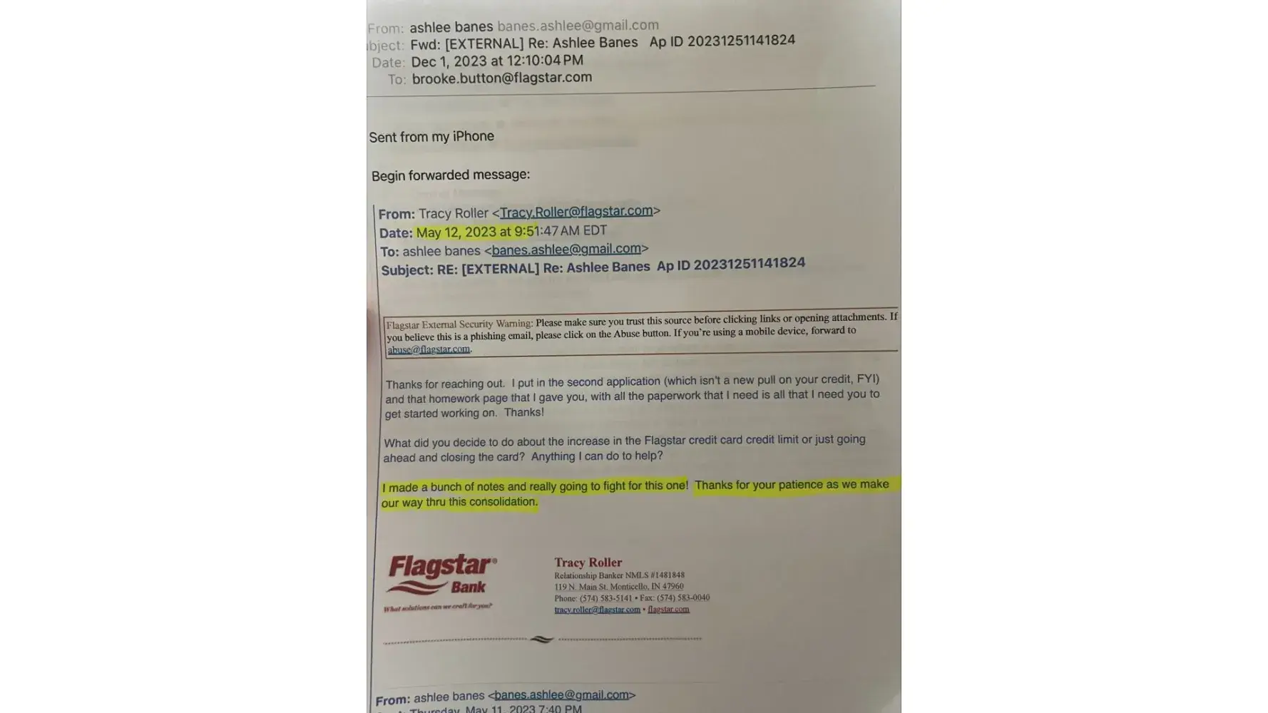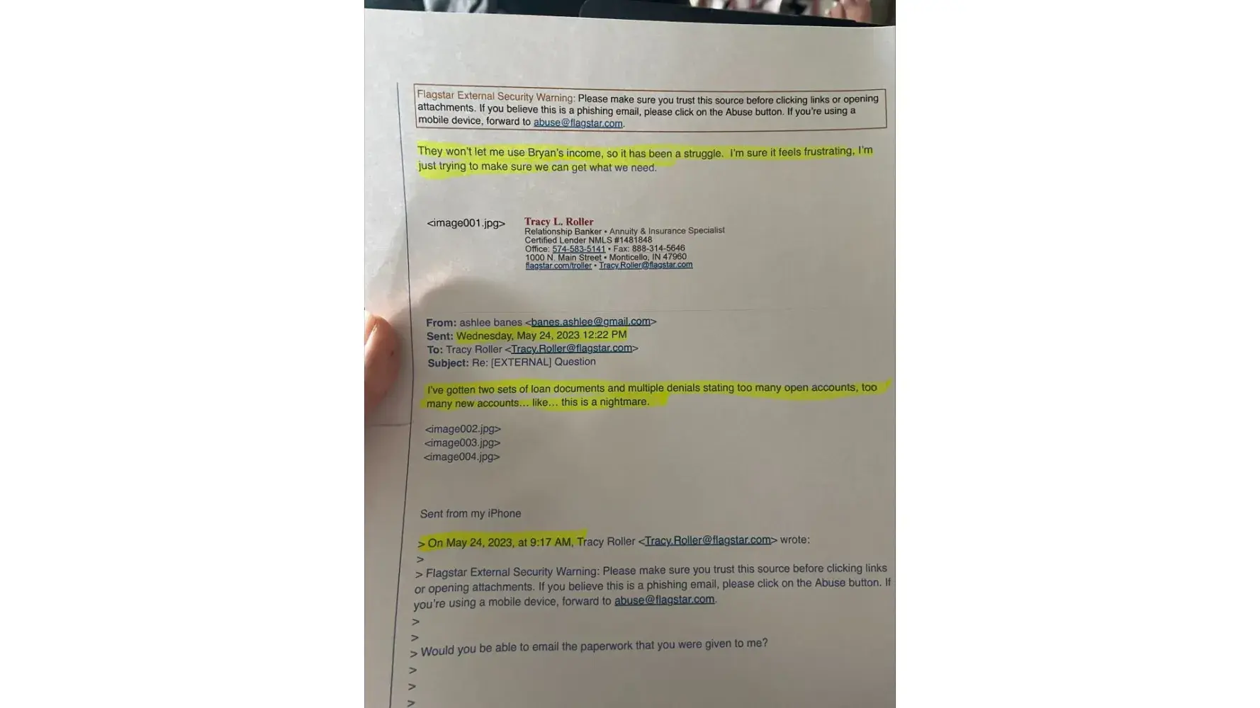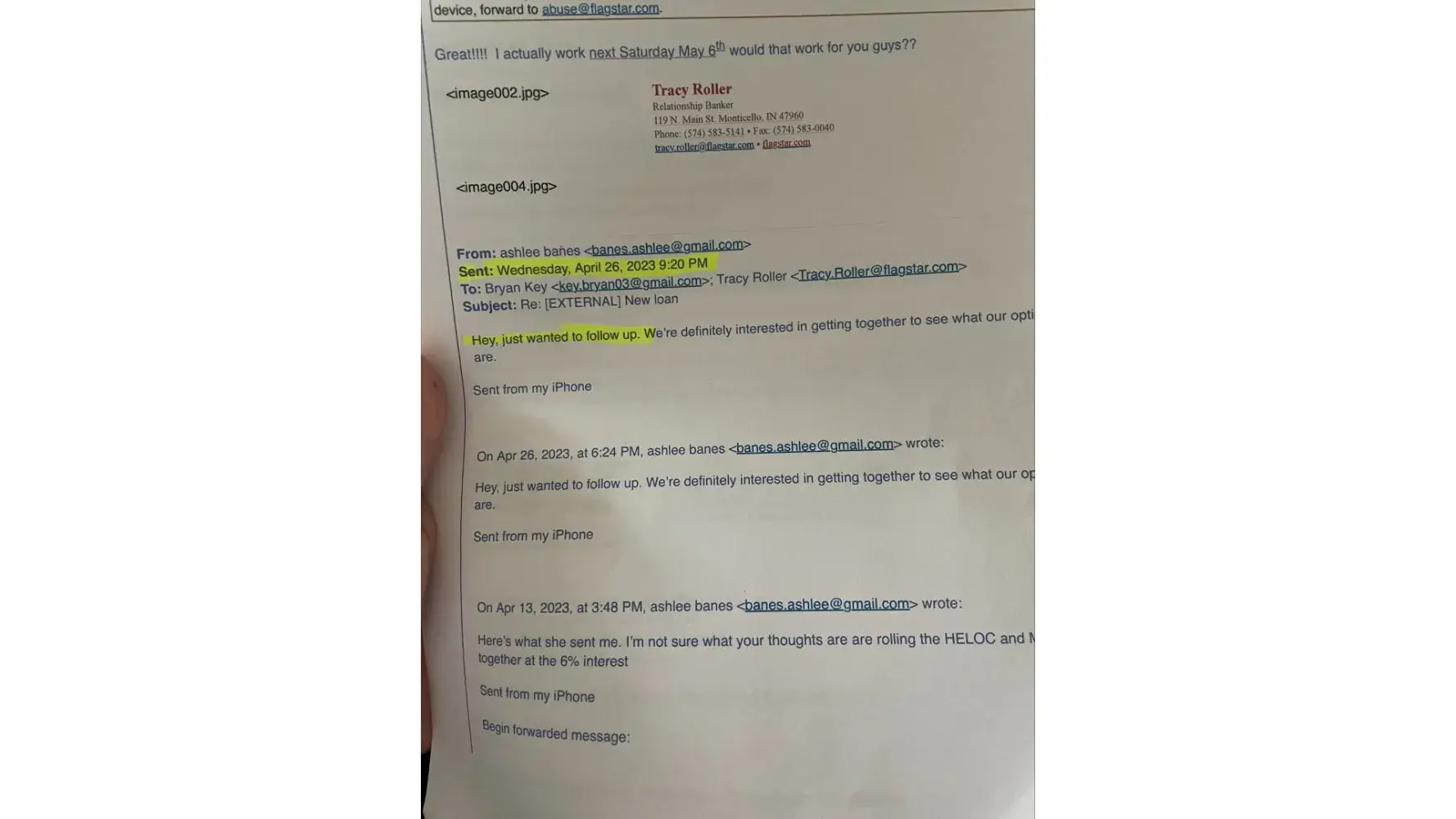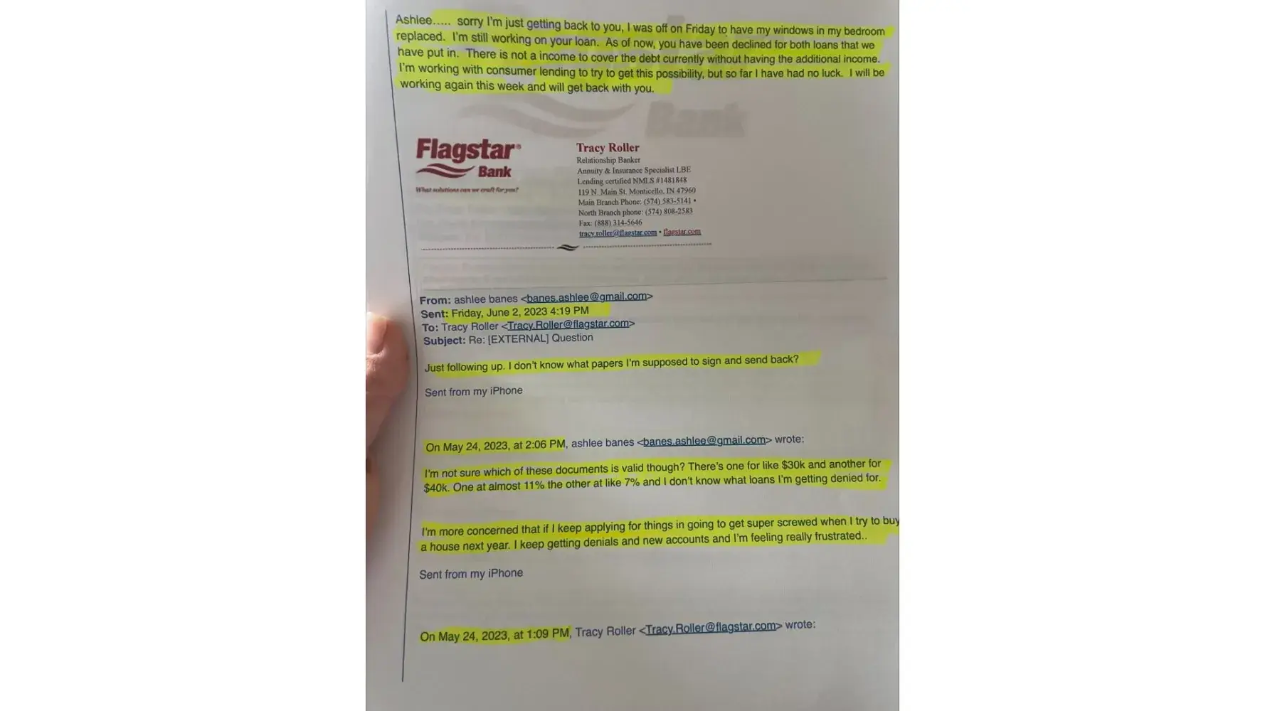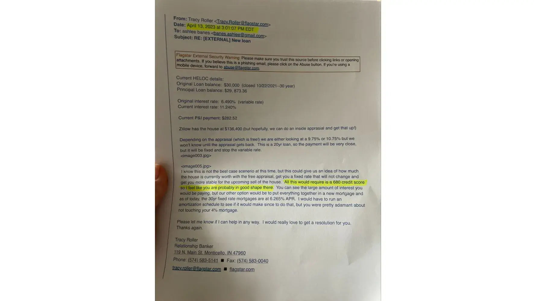 On April 13, 2023 I began email correspondence with a Flagstar Loan officer to discuss options for reducing impact on my finances as the interest rate of my HELOC was steadily increasing and the payment was becoming too high. On May 5, 2023, I met with a loan officer at the Monticello, IN Flagstar branch to discuss options for getting a new/different loan...