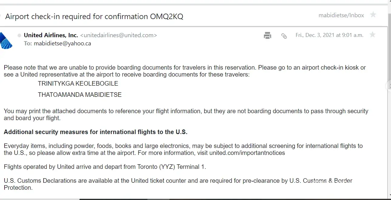 United Confirmation number: OMQ2KQ