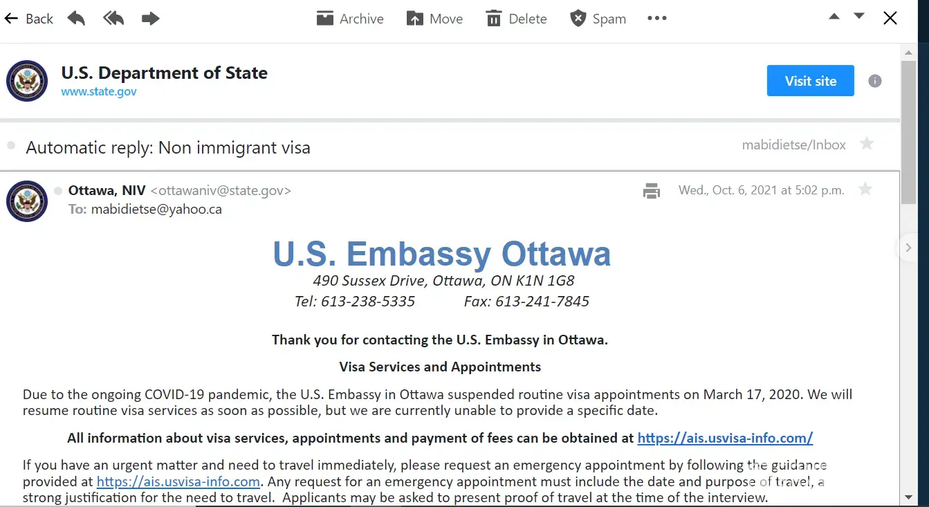Return May 26, 2021, from Toronto, Canada