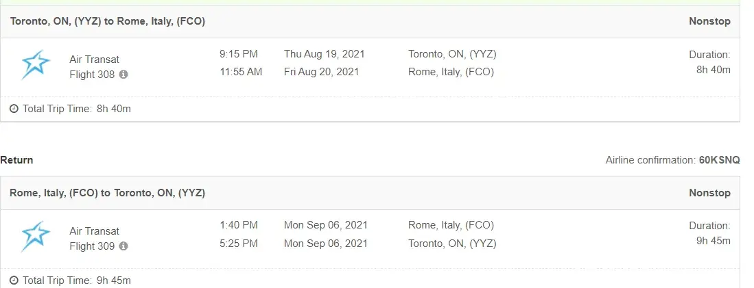 In July 2021 FlightHub let us know that AirTransat cancelled all flights to Rome up to the end of 2021 (because of COVID-19)