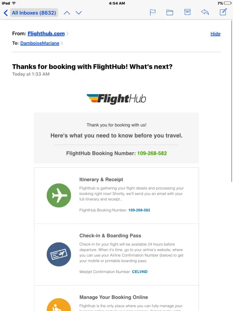 this is Diana mando I booked a flight through flight hub on June 12th, 2018