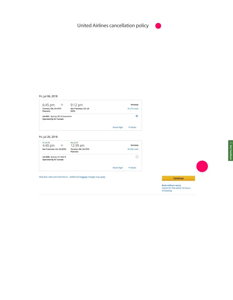 c) I am also wondering if I should have been able to cancel and receive a full refund within 24 hours of booking. This seems to be possible with other airlines and services.
