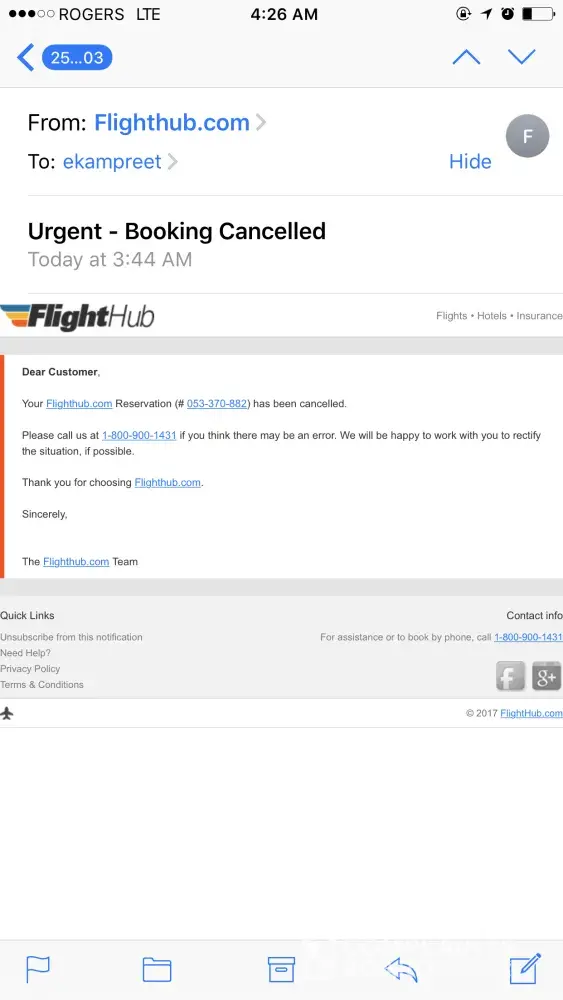 FlightHub booking error and would not fix (do not trust or use)