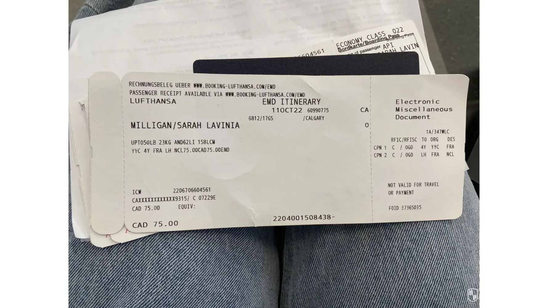 Bought Airline tickets from Flighthub.ca. When I booked I believed I was buying Economy tickets and that they included one checked in case up to 23 kilos. This was confirmed on my receipt at time of purchase. When I came to travel they wanted $75 each way to check in a case. I was told Lufthansa had me down as Economy LIGHT. I did not knowingly book Economy Light as that was never mentioned at time of booking and is at odds with what my receipt said which was Economy and one free checked in piece of main luggage up to 23 kilos included along with hand luggage up to 8 kilos. Tried messaging Flighhub and they just keep saying I bought Eco Light but my receipt says economy as mentioned. This is fraud, misleading customers. I'd like a refund for the $150 they charged me for my case at the airports on outward and inbound journeys.
