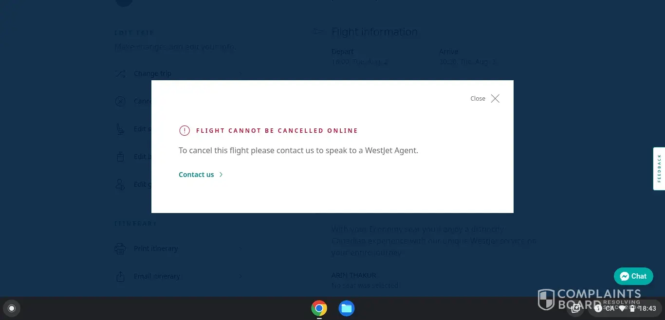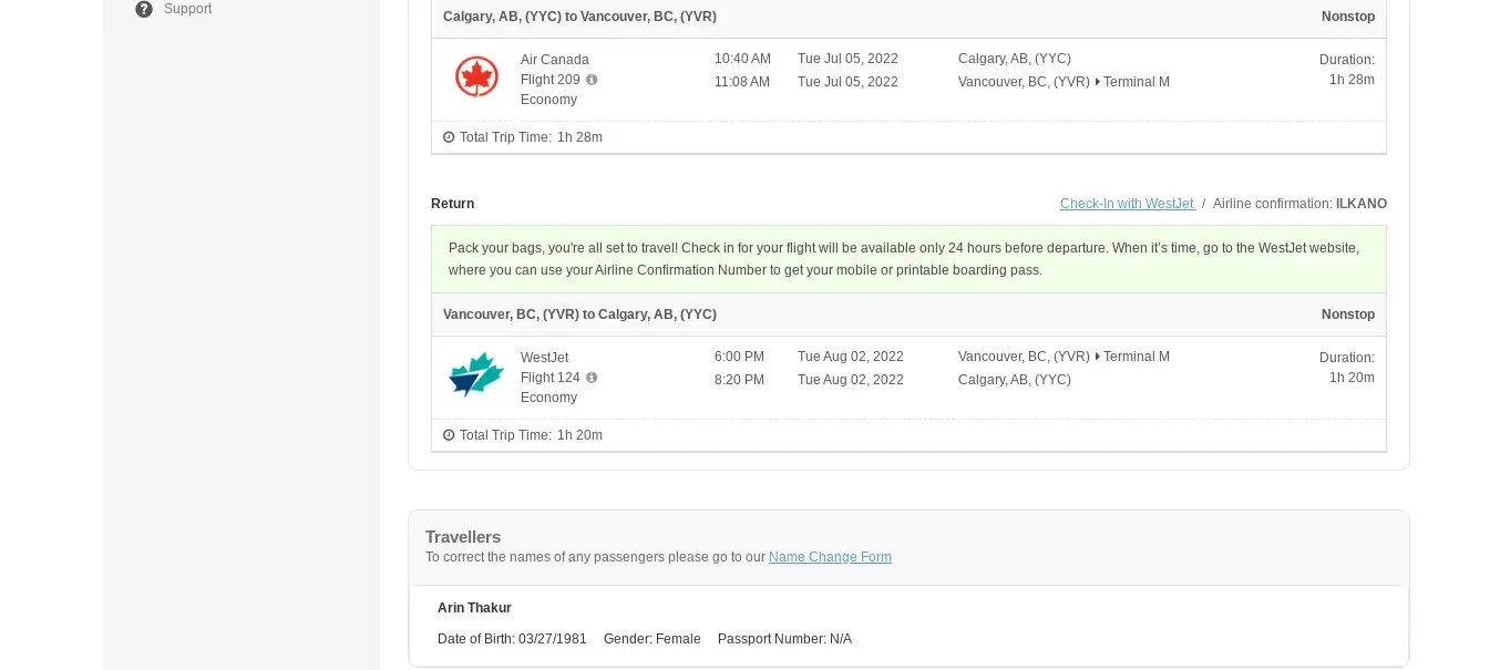 I purchased a return ticket online from Calgary to Vancouver. I flew on 5th of July to Vancouver but my return travel plans were supposed to be Aug the 2nd but due to some unavoidable circumstances my plans changed. I called the airline to change the ticket to some other date or else cancel the tickets. They were quickly taking phone calls for new reservations but as soon as they knew its an old reservation they quickly transfered me to nowhere. I waited for hours and hours for many days and then I decided to take another ticket from some other airlines. I havent seen so unethical and so irresponsible organisation before. I bet I will never use their services again. And there is no point of contact, no address, no e mail id. The govt transport agency has a complaint form which is automated and it starts with gives us the proof of written complaint. I just wonder why have all these agencies put themselves into an automated mode and there is no human to contact. Pathetic situation and nowhere to go and complain. Their self serve options make us go nowhere just move in circles.