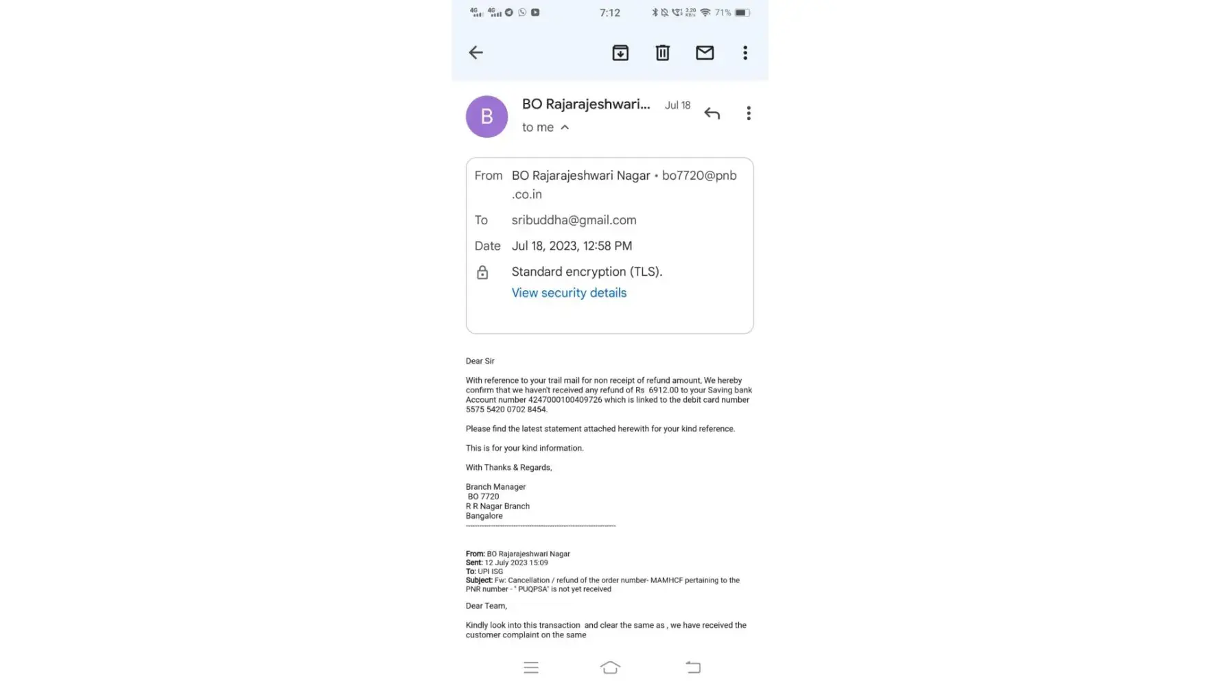 But the refund amount of 6992.1 INR is still pending pertaining to the PNR number - PUQPSA. After frequent correspondence I received the " payment reference is [protected] " from the virtual travel agent Flight Network which hasn't been received yet and I confirmed it from the Bank officials.