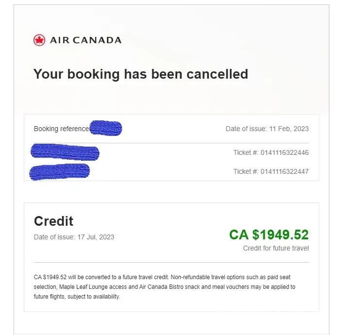 I received the refund of the cancellation of the following PNR numbers viz : XN9WVY and P1UC8E , of an amount 15,847.80 INR dated June 27th 2023 with the following details : MREF/W01/959906/[protected].
