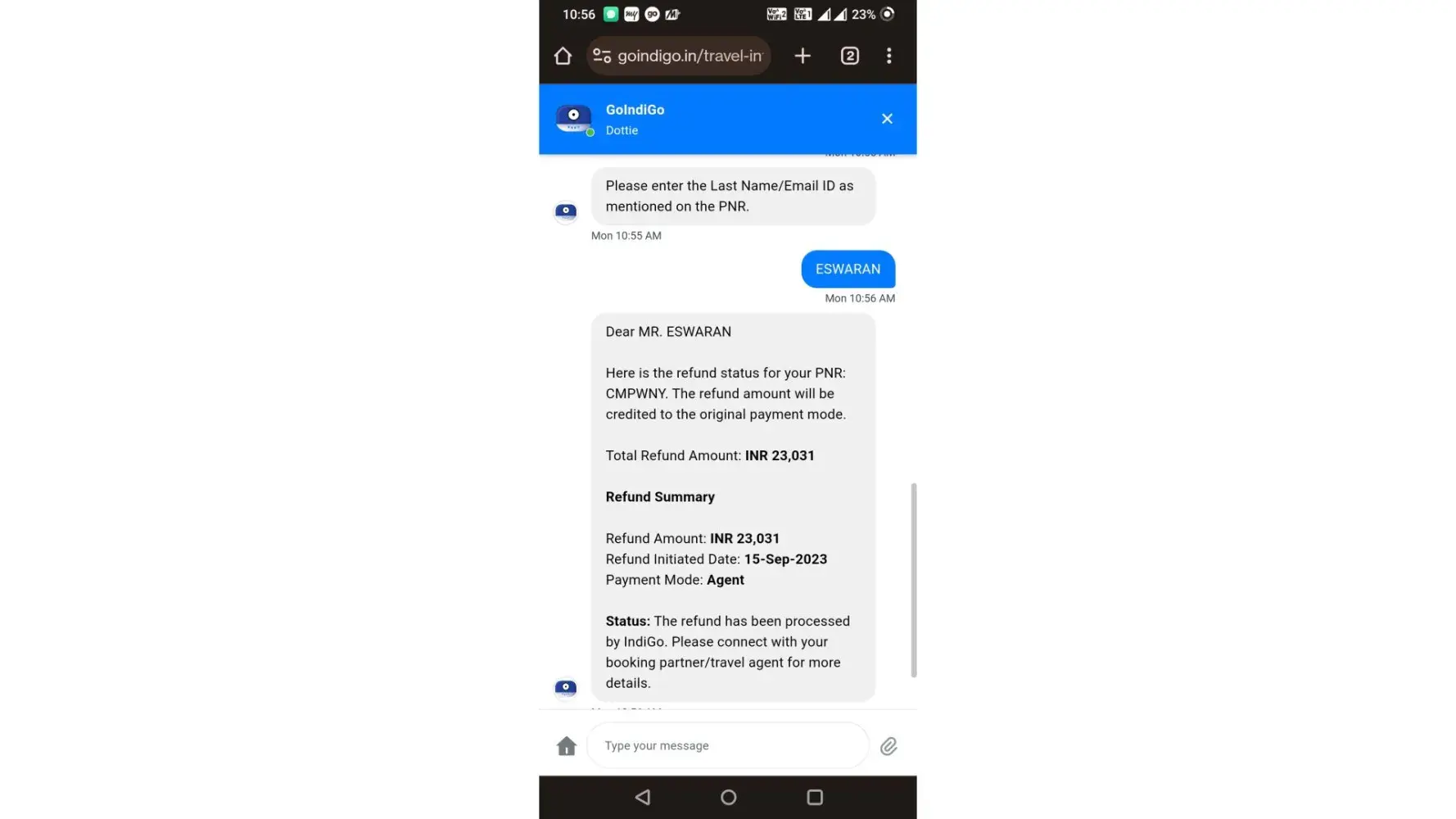 You are requested to process the refund as soon as possible as you have already received the refund from INDIGO airlines as informed from their side. Kindly inform us the mode of refund you have carried out to inform the Bank.