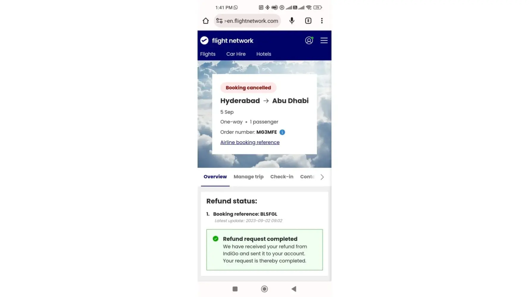 Indigo Airline cancelled my flight...they already initiated refund also...but flight network is not refunding the amount 23482
