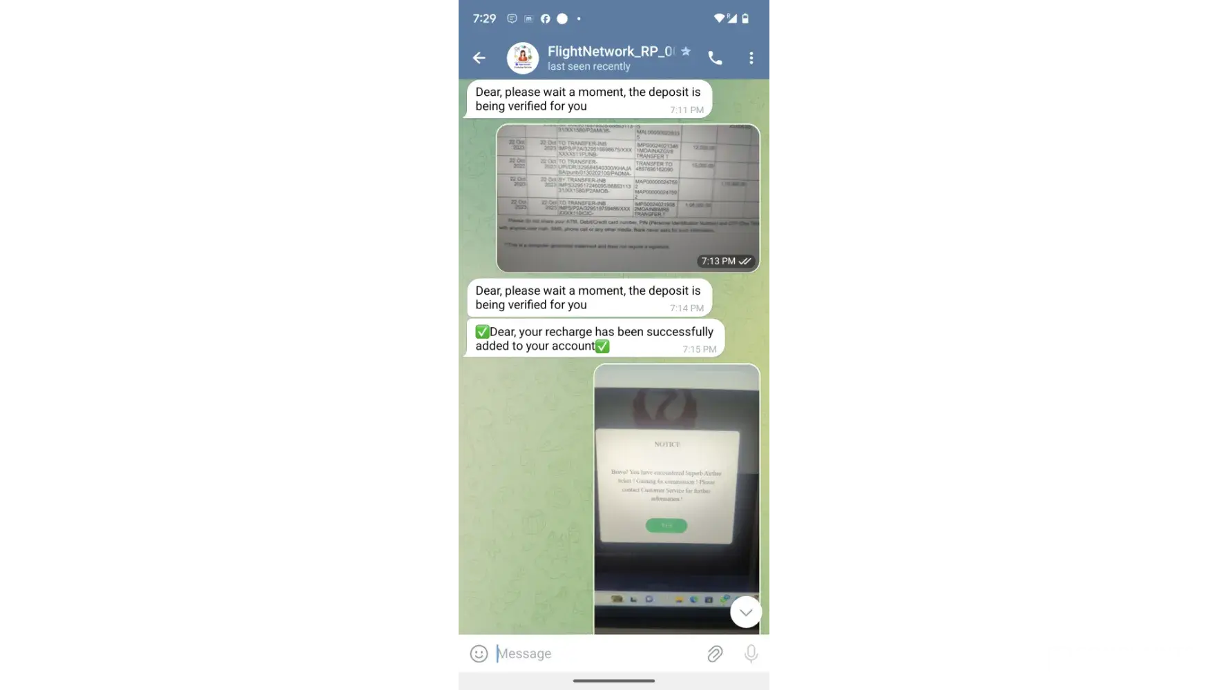 In telegram i have joined this flight group. Initially I have assigned for 90 bookings where in middle I got assigned with comission tickets which made my wallet balance as negative. Then they asked me to recharge for the negative balance so I can withdraw my.money after 90 tickets . I believe them and done. Then they told my level got upgraded and need to do 3 more bookings. For 2 bookings I got comission tickets . I have recharged for an amount of 10lakhs. This has emptied my bank account. Please help me with money return.