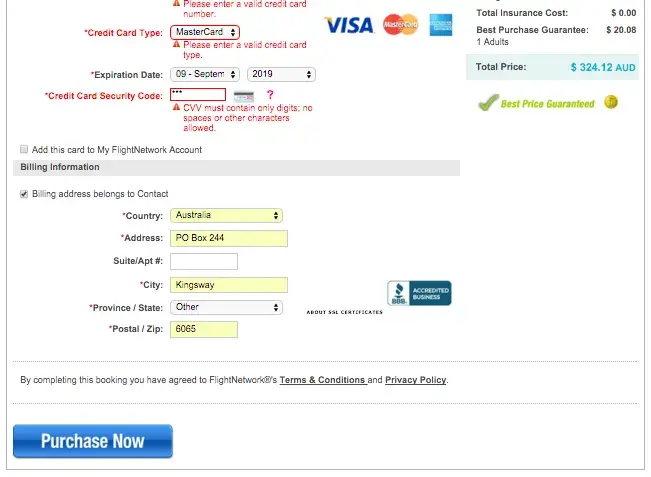 FlightNetwork.com flight not booked