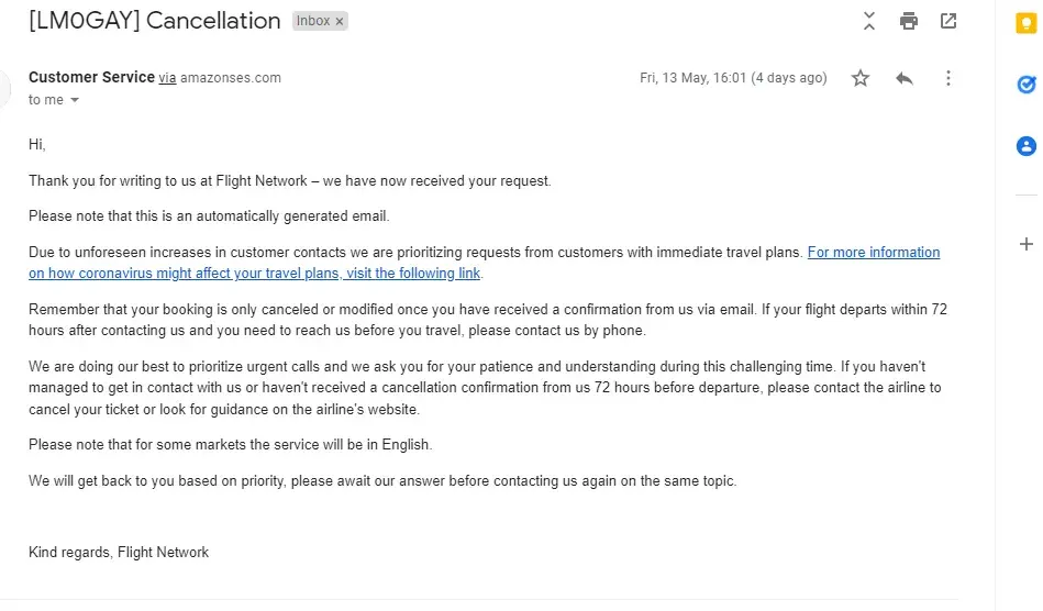 o Oddly enough we got an email from flight network on 09.06.2022 asking if we wanted a refund – we replied on 09.06.2022 asking for the refund asap