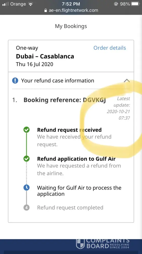The last communication that i received from flightnetwork back on october 2020 that my refund is on process however when i called the airlines directly they told me that no refund is requested for this ticket