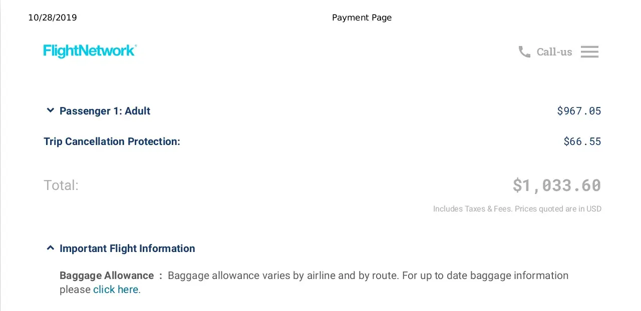 Before starting the review, I suggest readers who have bought tickets through flightnetwork.com to read this article by cbc from 2010 about how they sold tickets for flights that were unavailable to a couple in Vancouver, Canada: https://www.cbc.ca/news/online-travel-site-sells-unavailable-flights-1.949172. They were given a refund months after the flight...