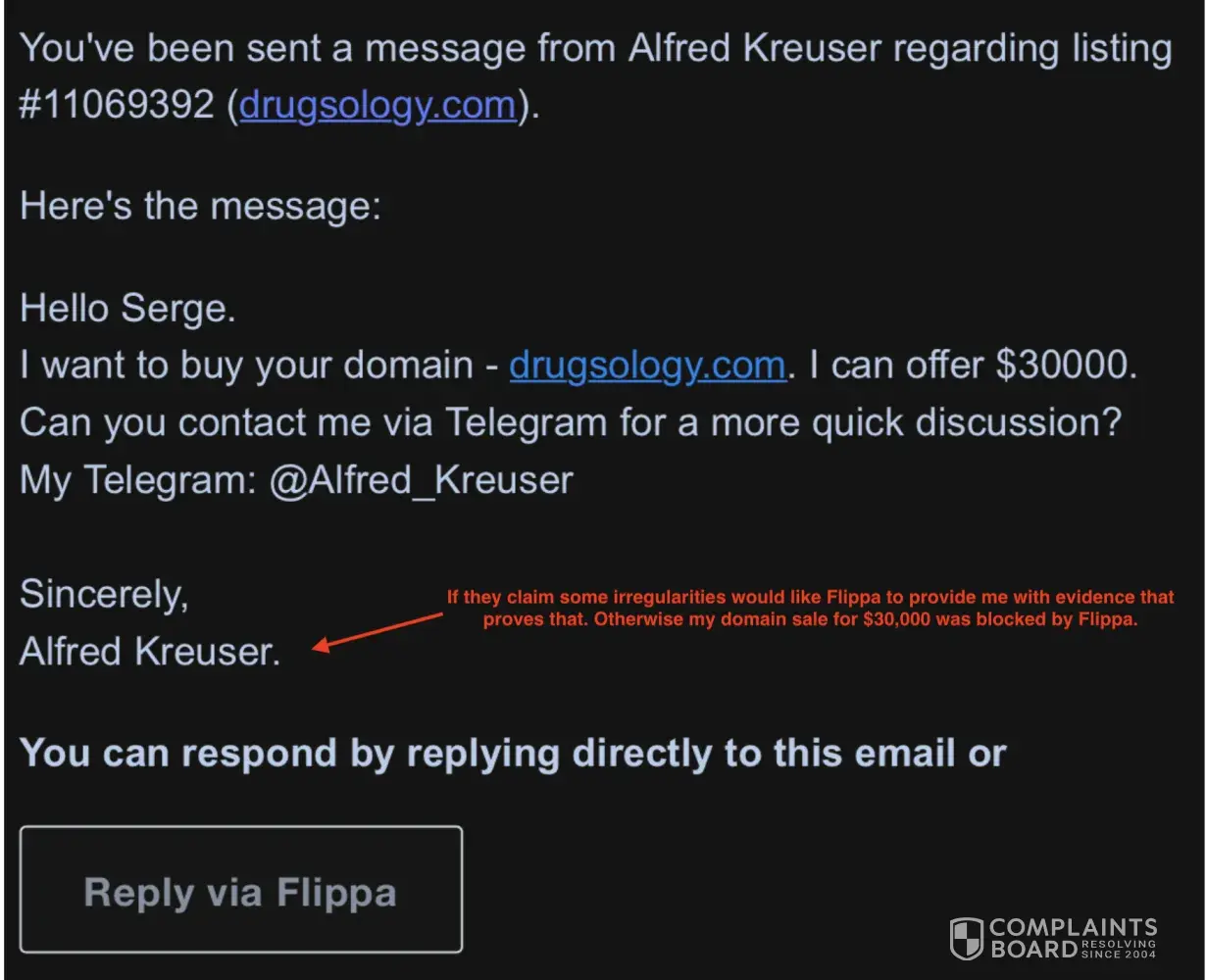 *Furthermore, Flippa removed Mr Alfred Kreuser's offer to purchase my domains for $30, 000.