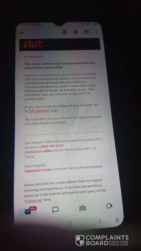 Fast forward to the end of the subscription period in April and the month that I had paid for ran out on May 10th which was fine. I had emailed customer care about having the account closed down which they didn't do but that was fine, I wasn't paying for the premium features. Today (26/5/23) however I received a notification from ApplePay that £42.94 had been taken from my account. I did not authorise this payment and have emailed their customer services about it but won't get a reply from them. They have also deactivated their phone number that I previously called on.