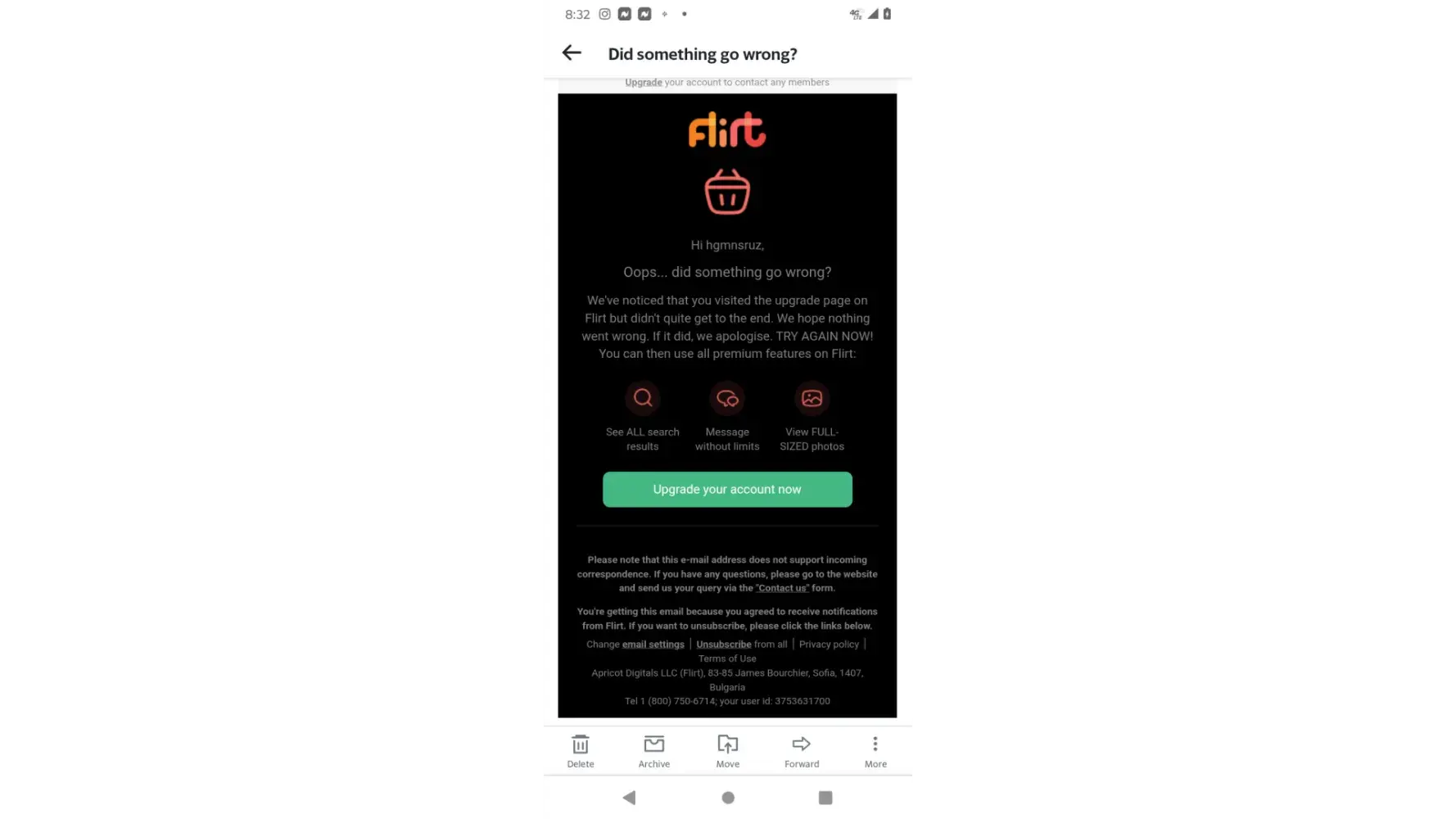 We found clear and detailed contact information for Flirt.com. The company provides a physical address, 2 phone numbers, and 2 emails, as well as 4 social media accounts. This demonstrates a commitment to customer service and transparency, which is a positive sign for building trust with customers.