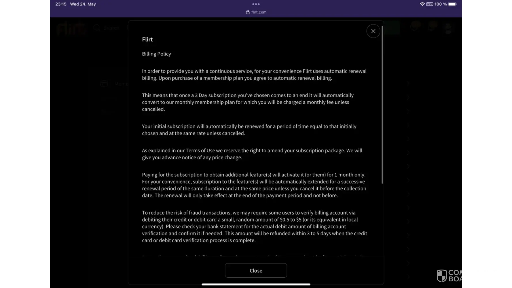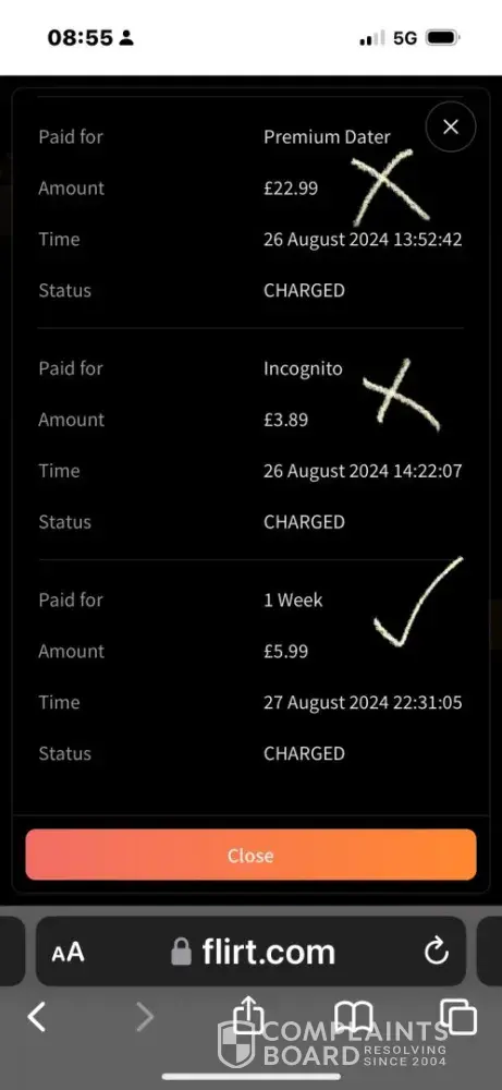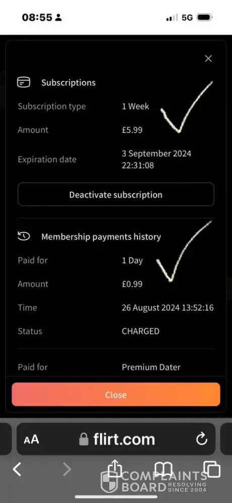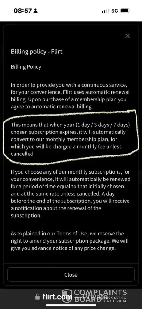 I subscribed to Flirt back in April of this year for a month, which was unknown to me as I had selected for a 1 day trial but ended up somehow paying for a whole month.