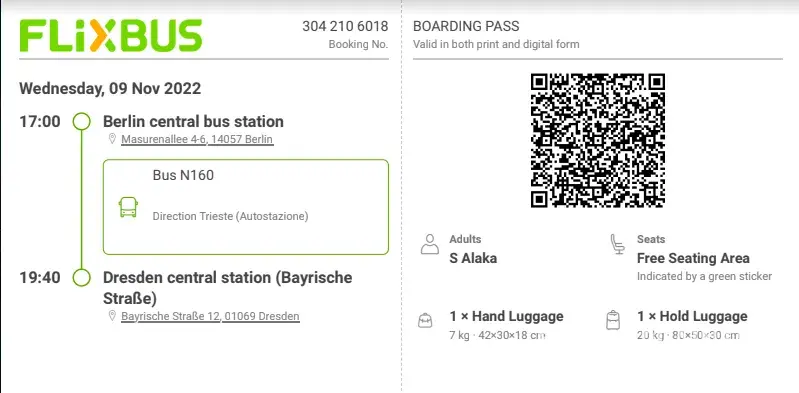 My name is Solomon Alaka, I booked a ticket from Berlin to Dresden and unfortunately missed the bus due to my inability to locate the station in question on time, I went to the tourist information centre at centra station and was directed to go and join the bus or another one at Sudkruez, I waited at the said station for hours before I saw another bus going to Dresden {19:20 bus/ 9/11/22} going to Prague, and on explaining and presenting my ticket to the driver and his companion, I was told I can't use the ticket even though it's unused, and that I have to buy another ticket for €32, I have no other choice than to pay the said amount, however what surprises me most is that the driver refused to issue a ticket to me after collecting the money and based on the fact that I already booked an accommodation at Dresden, I decided to pay the money so I won't lose out on both the ticket and my accommodation.